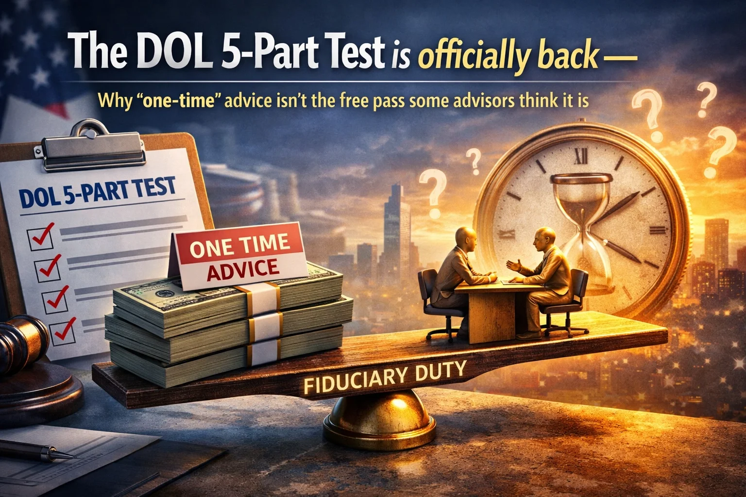The DOL 5-Part Test is officially back , Why 'one-time' advice isn't the free pass some advisors think it is